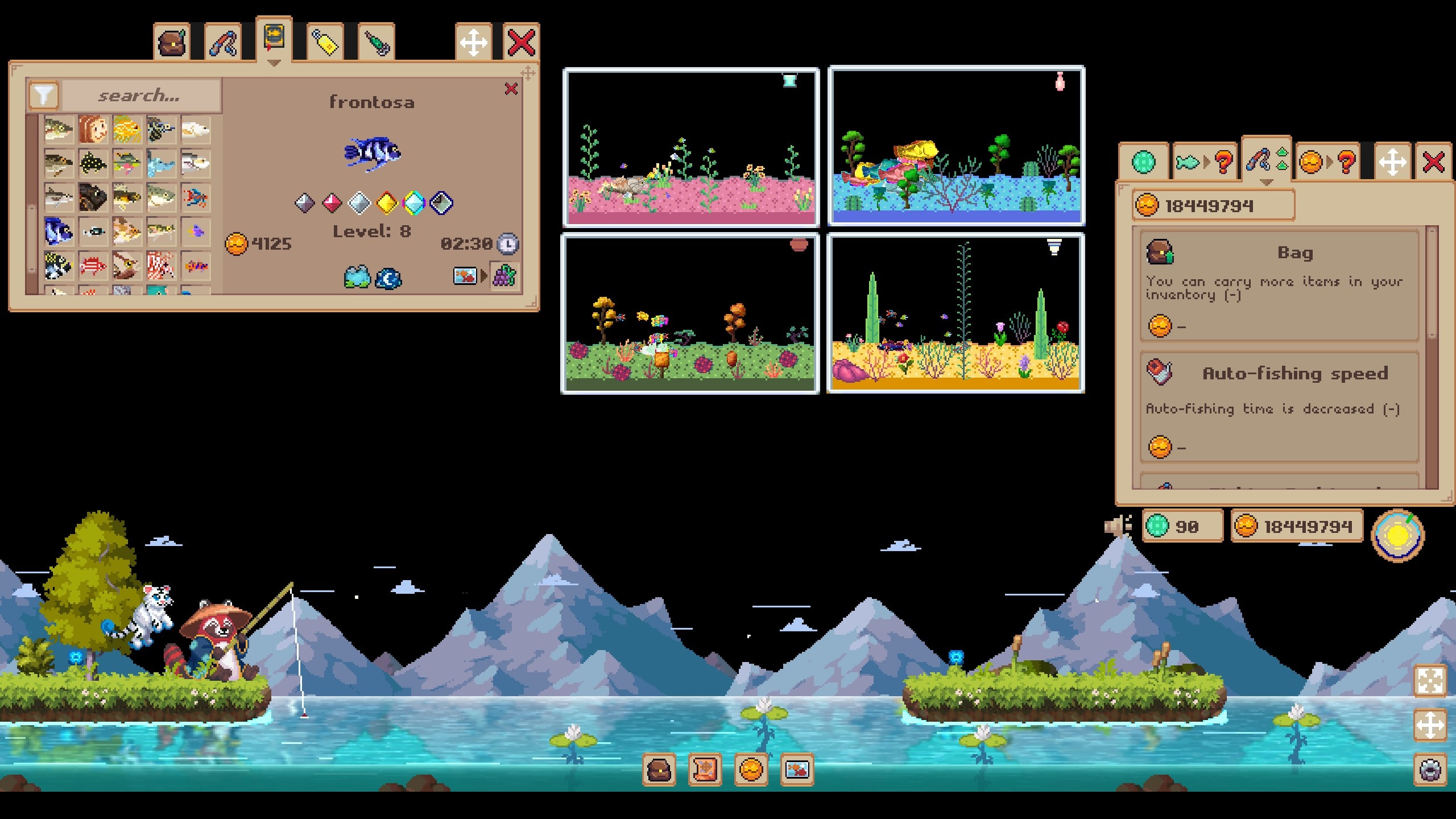 You decide how to play: manually check your catch or fully rely on auto-fishing. The flexible interface allows you to resize the window, move it, or hide it.